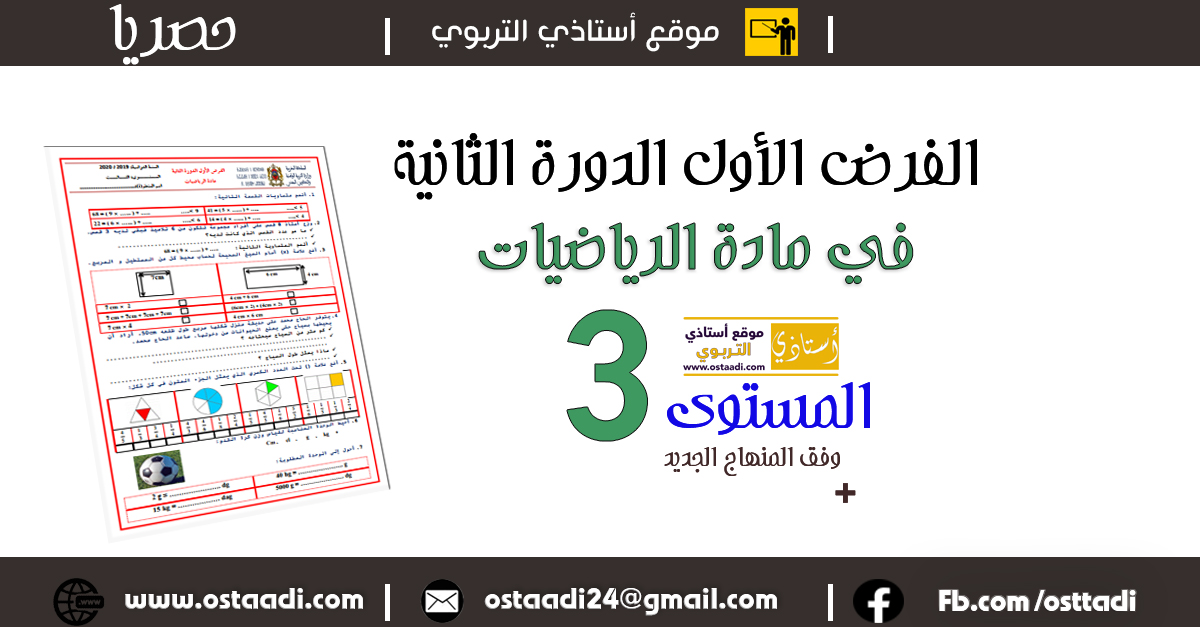 الفرض الأول الدورة الثانية مادة الرياضيات المستوى الثالث ابتدائي
