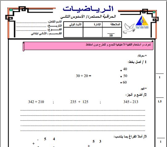 تحميل جميع فروض الرياضيات للمستوى الثاني ابتدائي