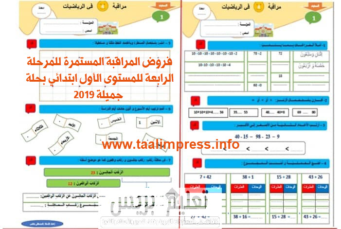 فروض الرياضيات المستوى الاول ابتدائي مع التصحيح Moutamadris Ma