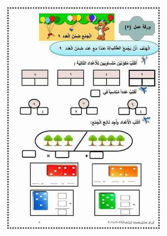أنشطة داعمة في الرياضيات للمستوى الأول ابتدائي